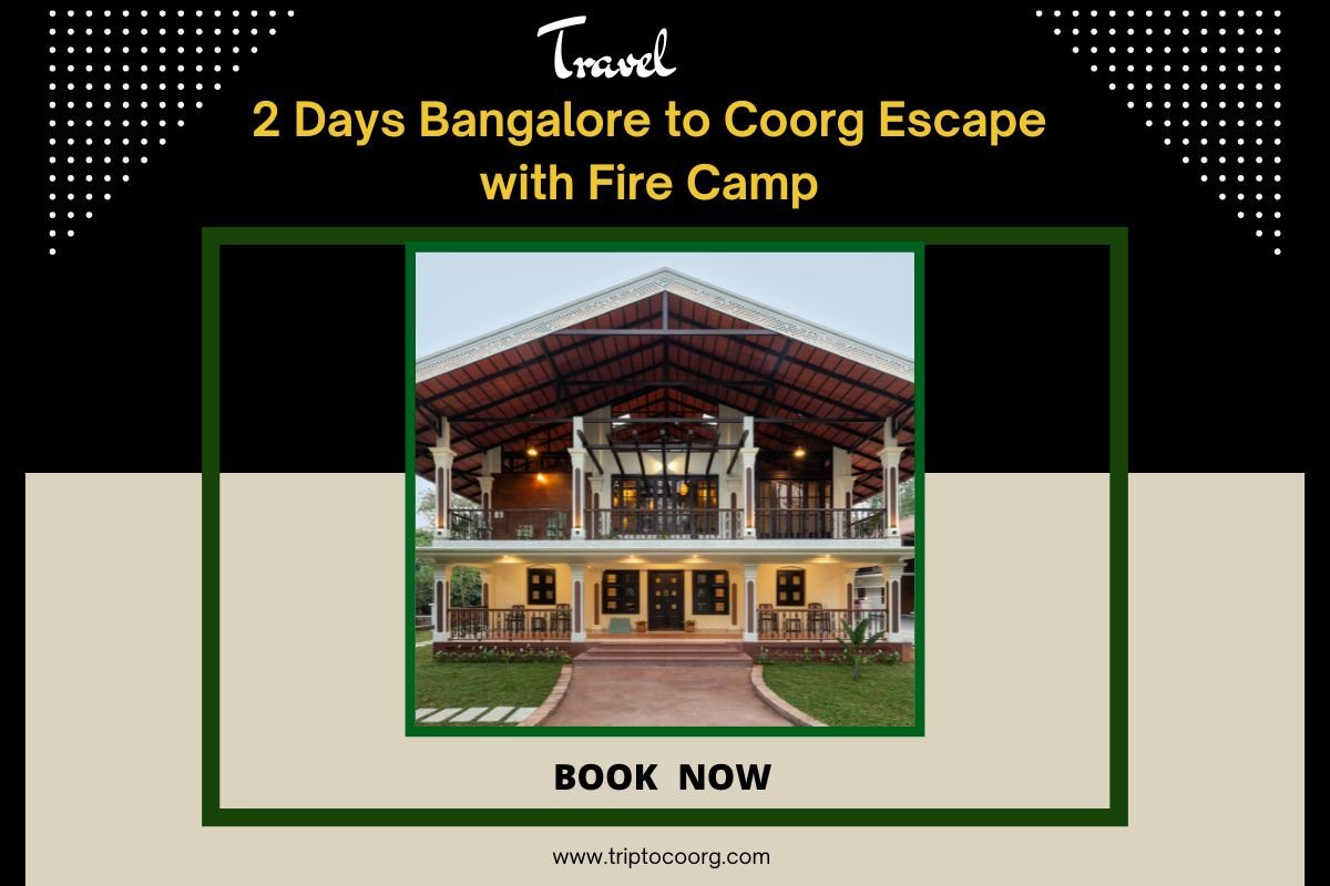 Escape to the lush landscapes of Coorg with a 2-day getaway featuring scenic beauty, cultural experiences, and estate-side farm stay. Visit Mandalpatti, and witness the stunning Abbey Falls. Enjoy breathtaking views at Raja’s Seat and immerse yourself in a Coffee Island Plantation Tour. Interact with elephants at Harangi Elephant Camp, and explore the greenery of Nisargadhama. Visit the serene Golden Temple (Namdroling Monastery) before indulging in Coorg product shopping. Stay amidst nature in a cozy stay. Book now with TriptoCoorg.com for an unforgettable experience!