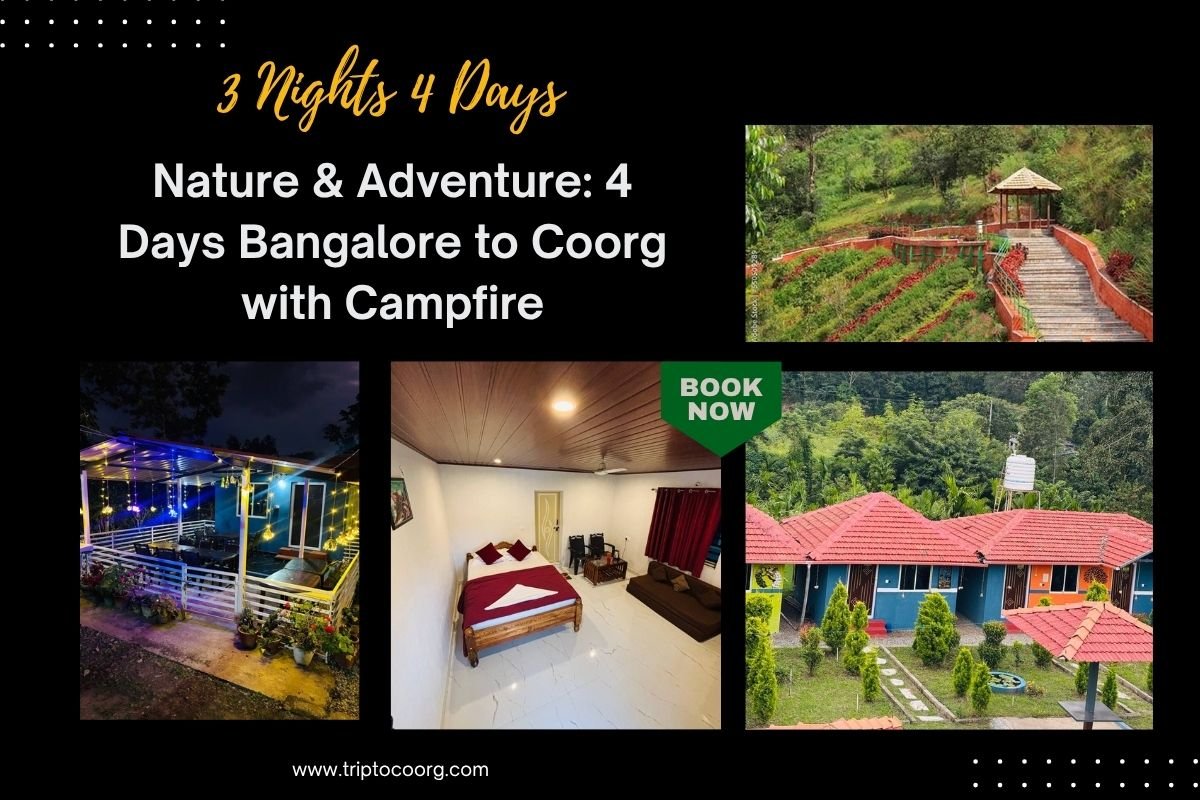 Experience the best of Coorg with this 4-day tour, exploring its breathtaking landscapes and cultural gems. Witness the beauty of Abbey Falls, Mandalpatti, and Irpu Waterfalls, and enjoy panoramic views from Raja’s Seat. Discover heritage at Raja’s Tomb, Triveni Sangama, and Bhagandeshwara Temple. Visit Talakaveri, the sacred source of the Kaveri River. Enjoy wildlife encounters at Nagarahole Tiger Reserve and Dubare Elephant Camp. Stroll through tea estates and Coffee Island Plantation, relax by Chiklihole Reservoir, Harangi Dam, and Nisargadhama, and explore the Golden Temple. End your trip with Coorg’s finest products. Book now at triptocoorg.com!